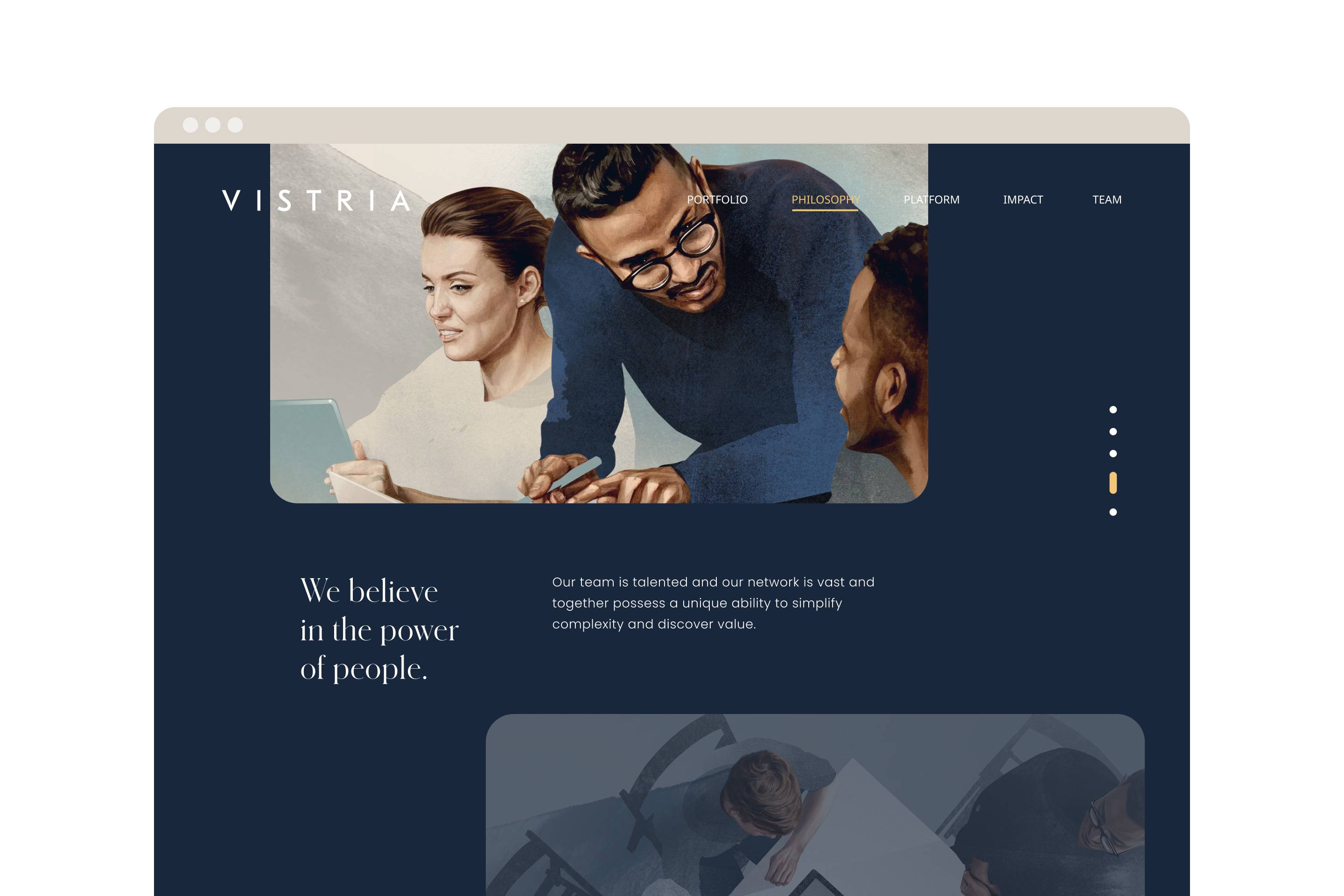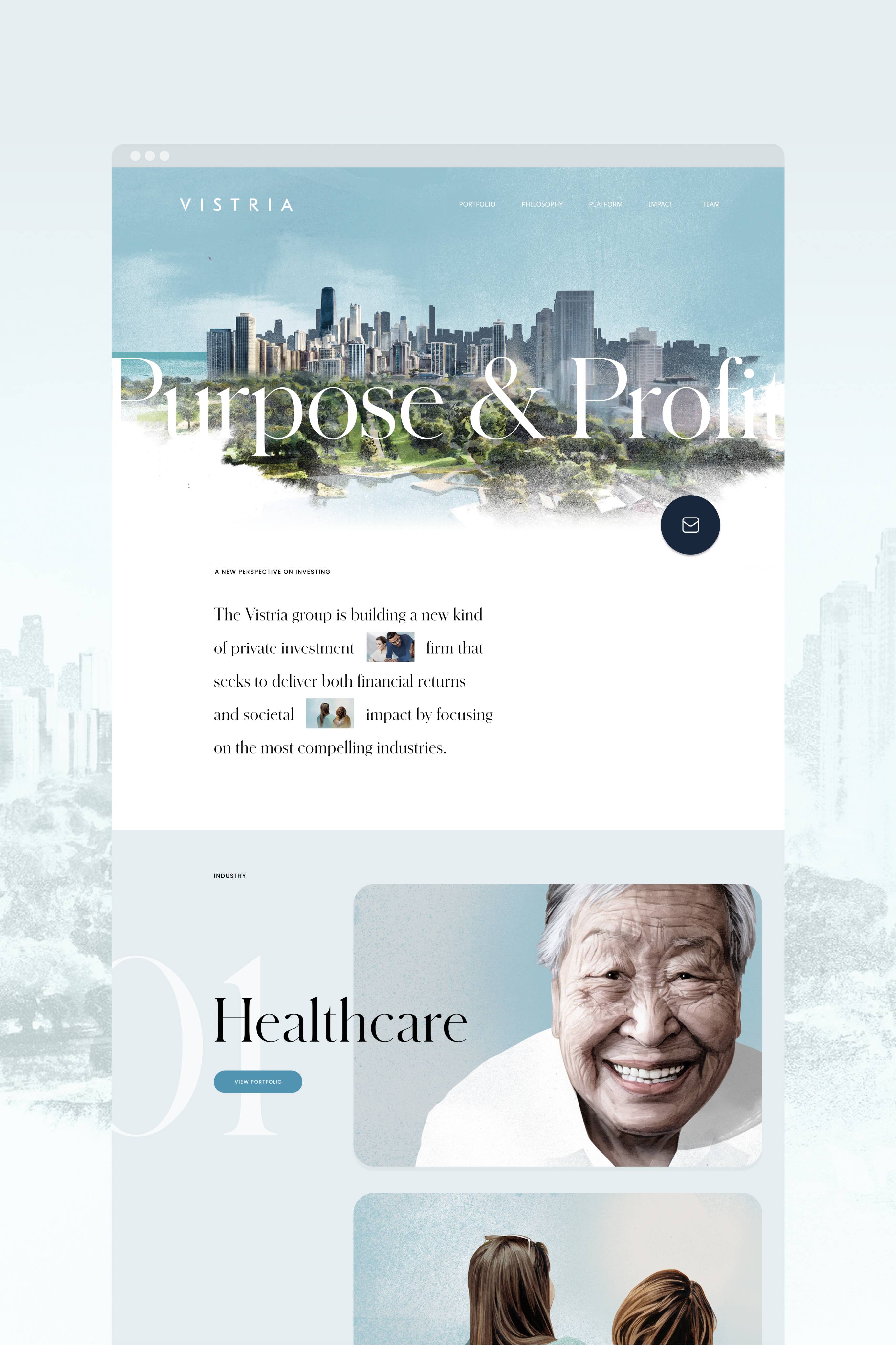 The reimagined experience brings this philosophy to the forefront through a warm, community-driven visual approach. Custom illustrations — inspired by real people and rooted in Vistria’s Chicago identity — reflect a commitment to impact, inclusion, and a more human model of investment. It’s a brand expression that challenges convention and puts purpose at the center.